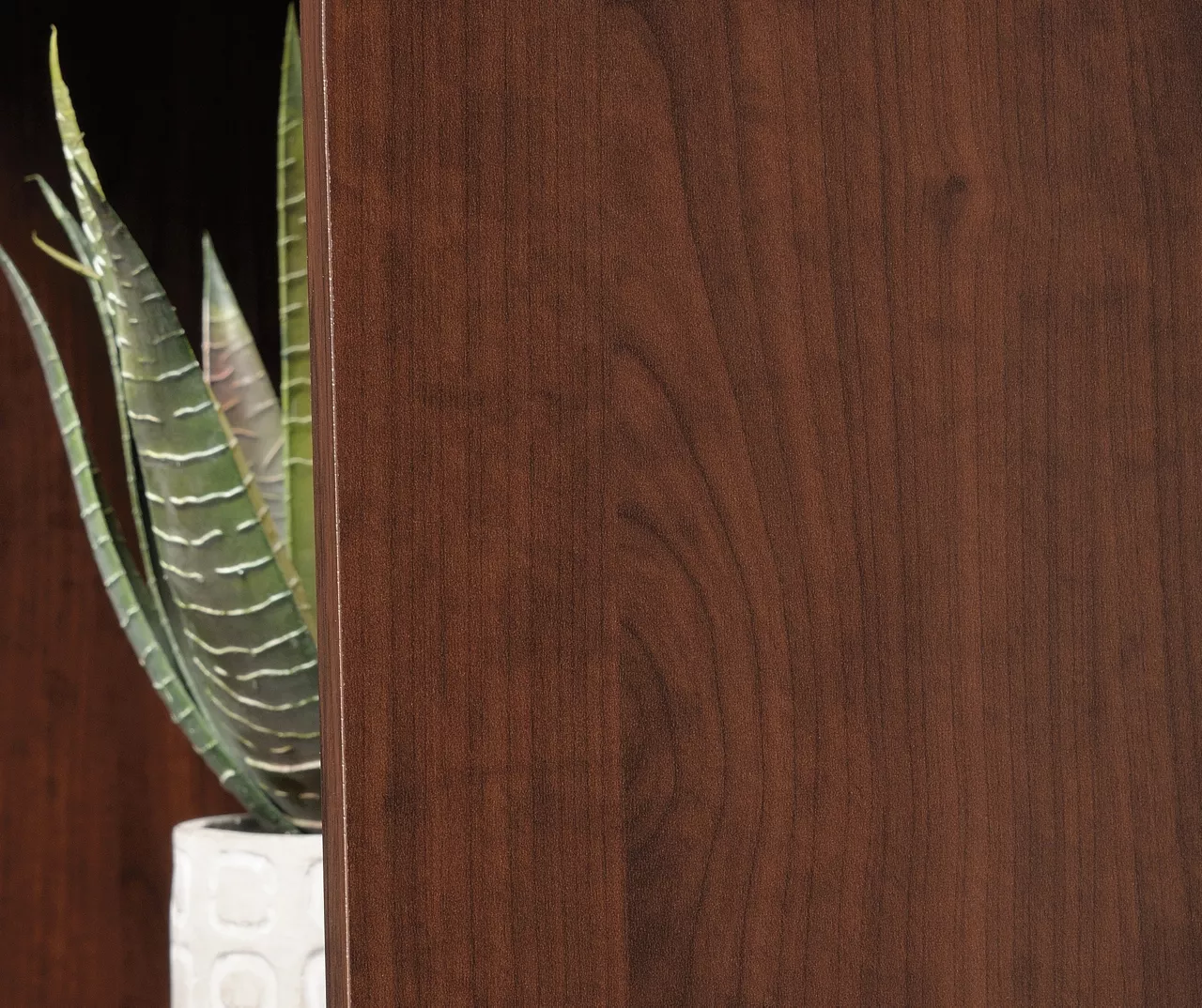 - Versatile shelf design in a rich Autumn Cherry finish