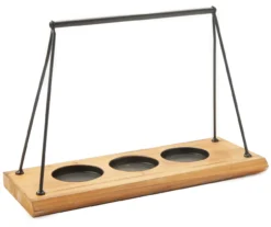 Festive Gathering Gold 4-Tier LED Votive Candle Centerpiece With Pine, Leaves And Berries