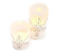 Silver Glitter & Gem Snowflake 2-Piece LED Pillar Candle Set