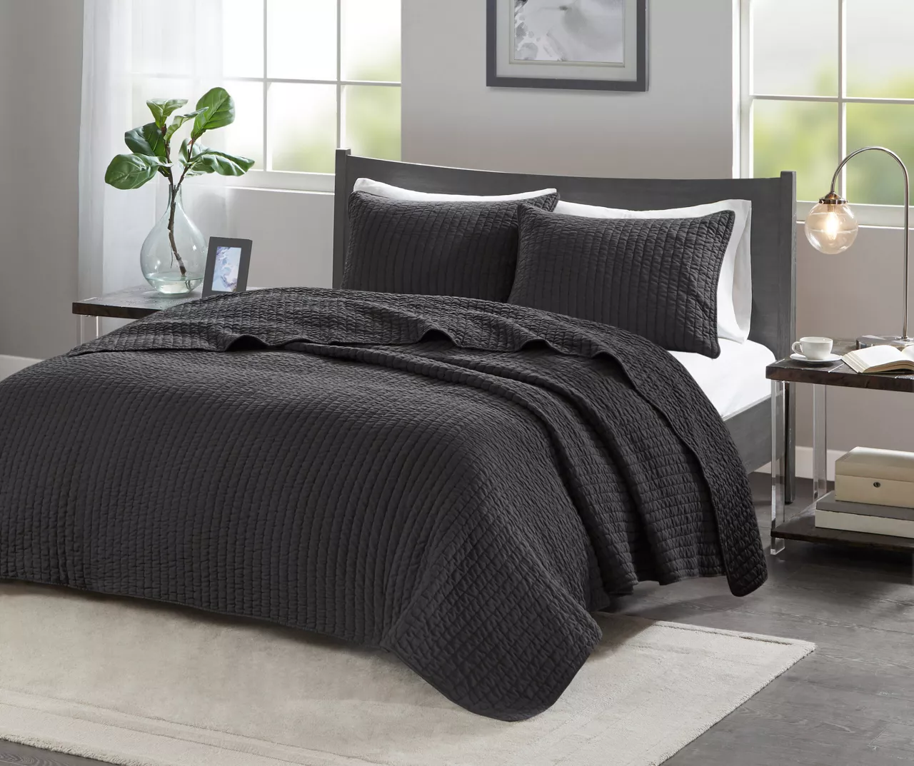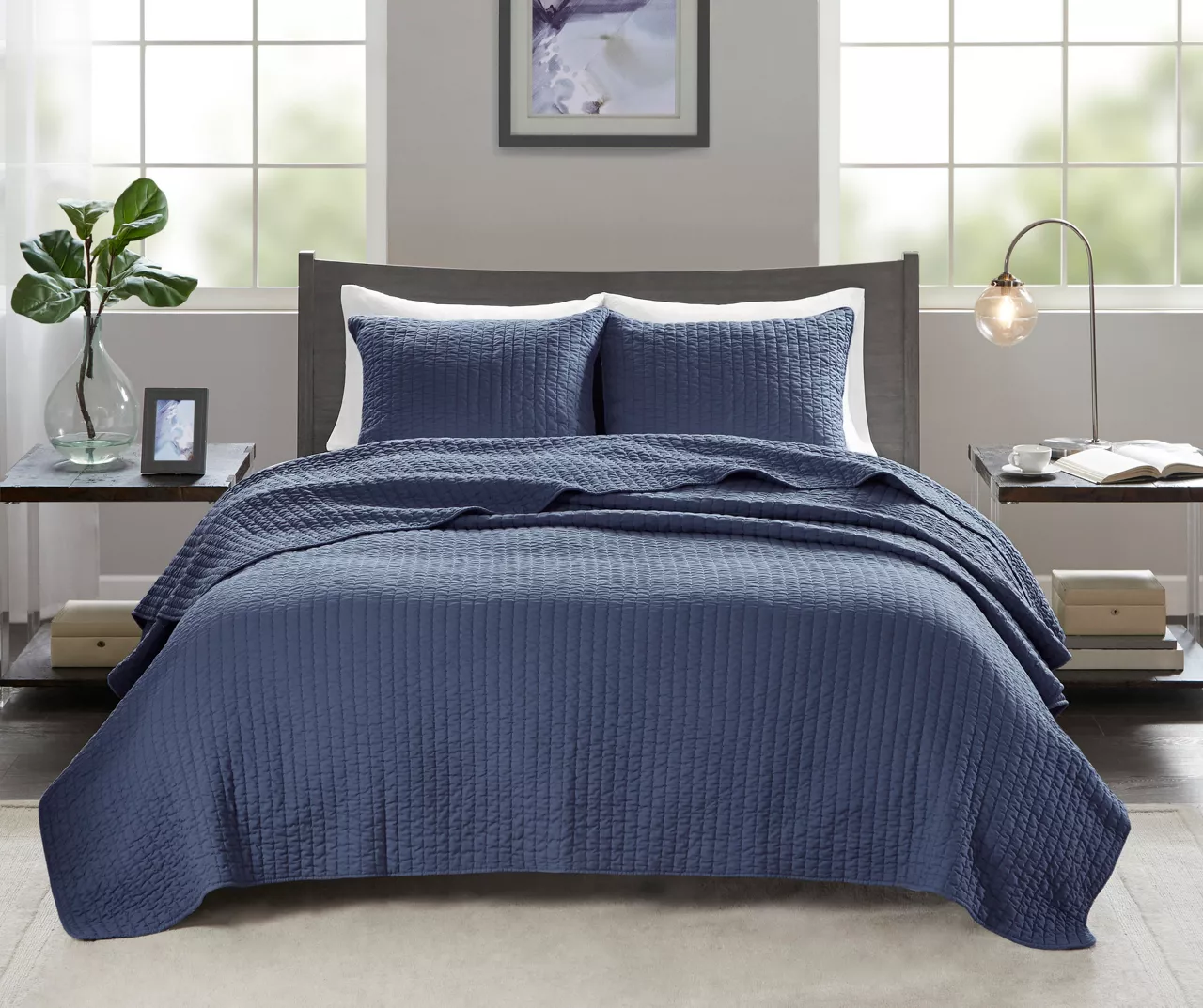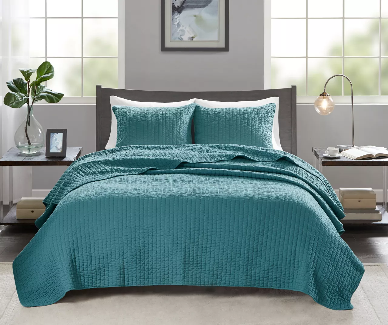 The Mitchell coverlet set provides a simple and casual update to your bed. This solid reversible coverlet features pick stitch channel quilting to keep the cotton-rich filling secure and create a cozy farmhouse look. A matching sham complements the coverlet to complete the bedding set. The coverlet also has an antimicrobial treatment that helps provide built-in freshness protection to help keep fabric lasting longer. Made from soft brushed microfiber, this set is perfect for summer or as an extra layer in cold weather.