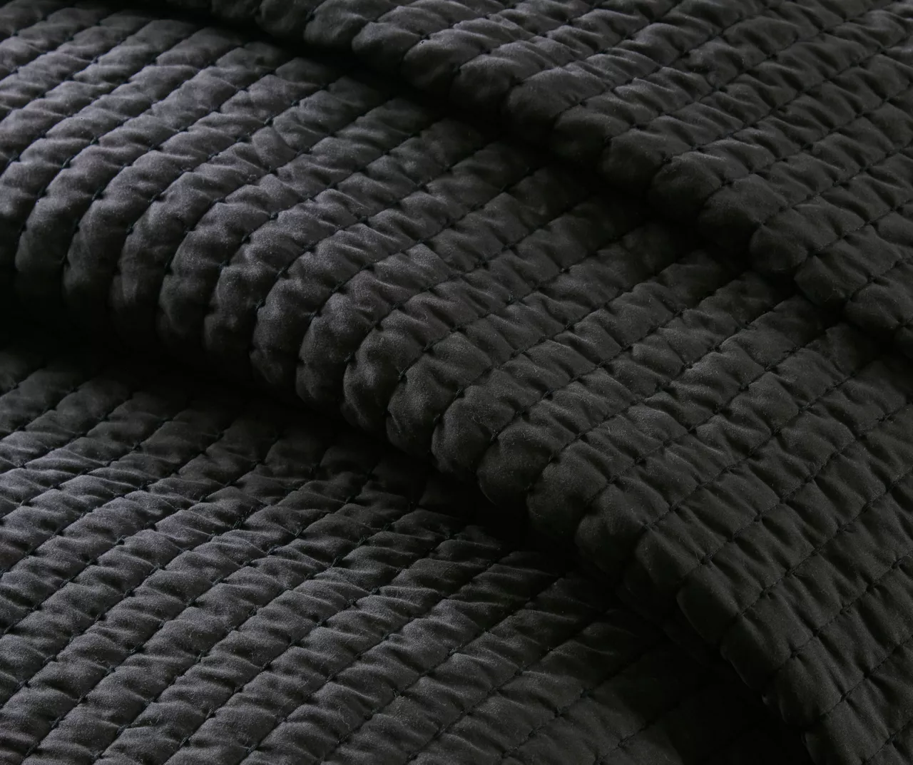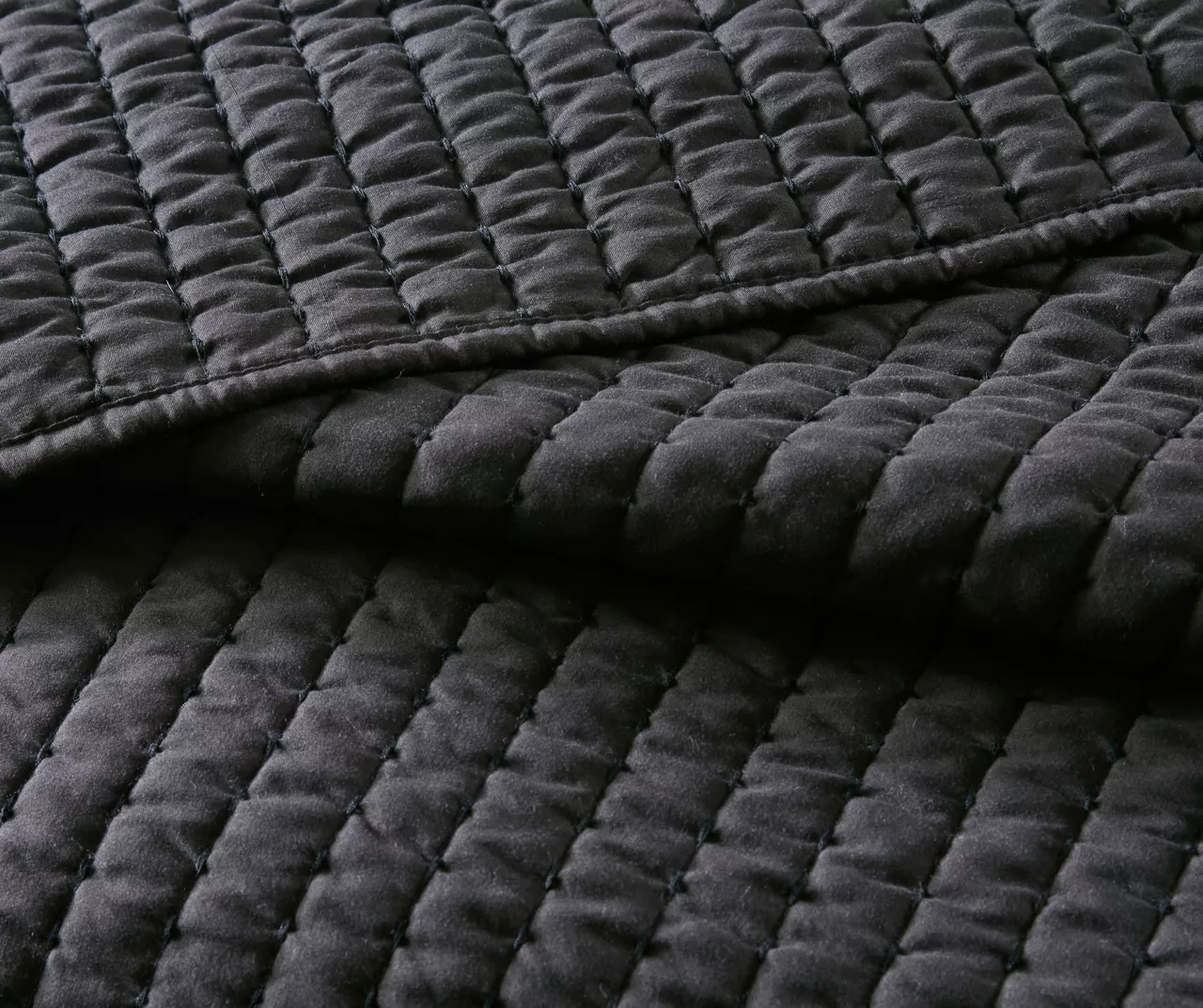 - Material: Coverlet/Sham: 85gsm polyester microfiber, 1″channel quilting, brushed polyester reverse, 240gsm 90% cotton, 10% other fiber filling
