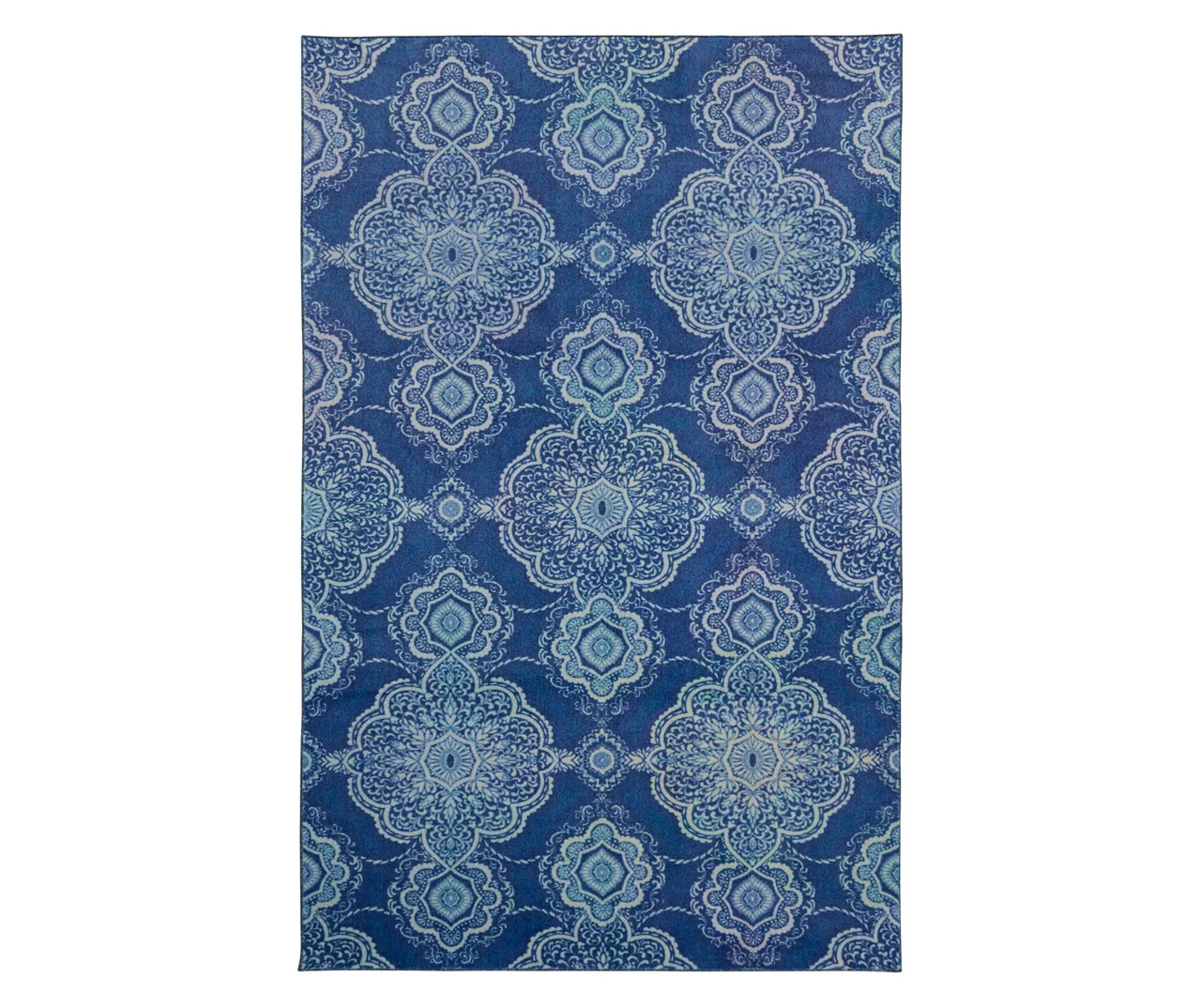 Delicate lace-inspired details dance inside the floral-shaped medallions of Mohawk’s contemporary Isabella area rug, showcased in a medium blue and white. Thoughtfully crafted in the U.S.A. utilizing Mohawk Home’s exclusive precision dye-injected printer, this rug is designed on a plush EverStrand™ tufted base made from premium recycled polyester. A non-skid latex backing helps to keep things in place, and the low pile is durably designed to easily work with doorways or furniture while withstanding everyday use.