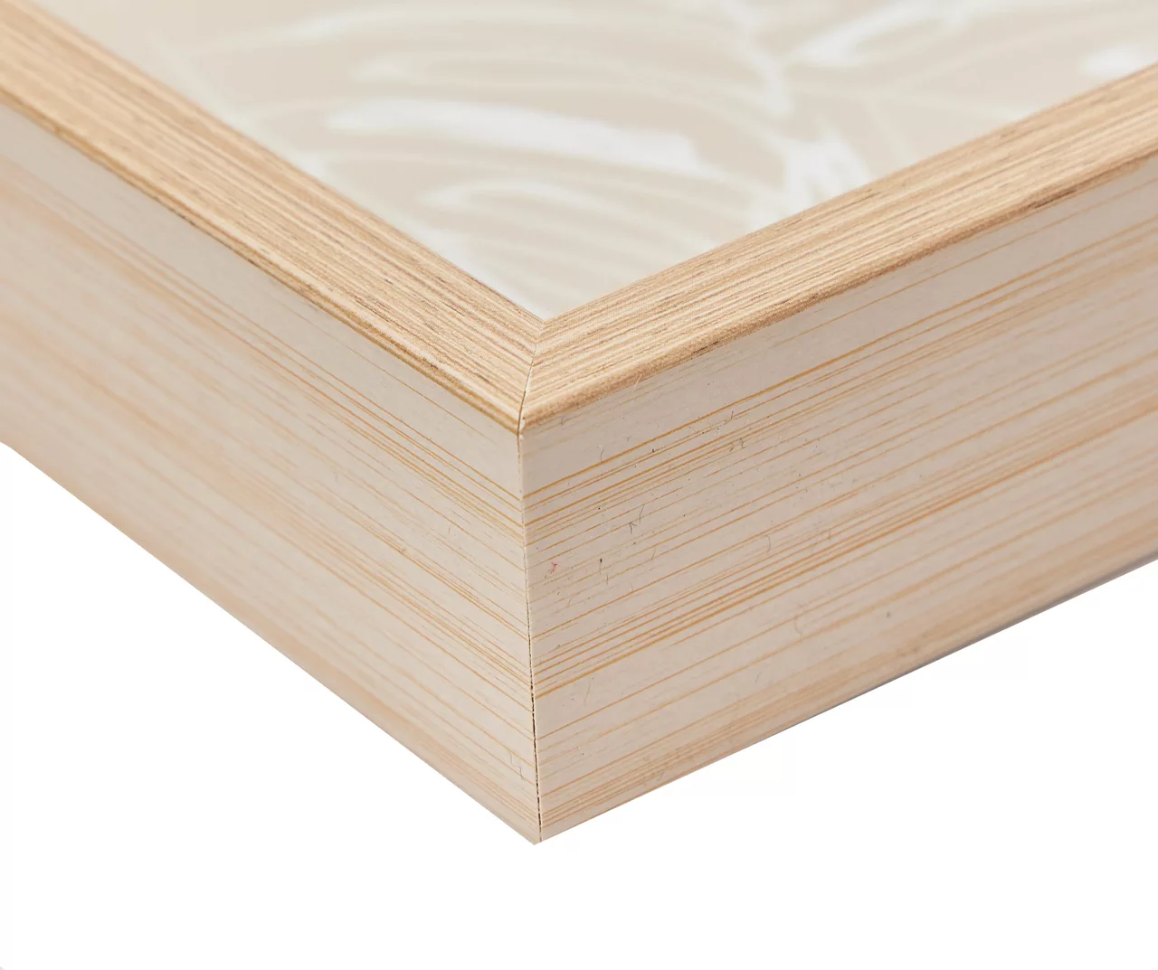 - Framed art with woodgrain-look frame under glass