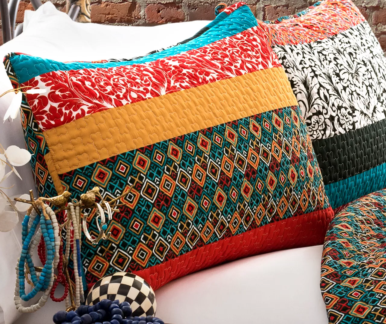 Geometric prints and intricate damask patterns define each blocked section of this boho-chic quilt set for a bedroom full of free-spirited vibes and vibrant colors. The breathable cotton construction keeps you comfy and warm all night.
